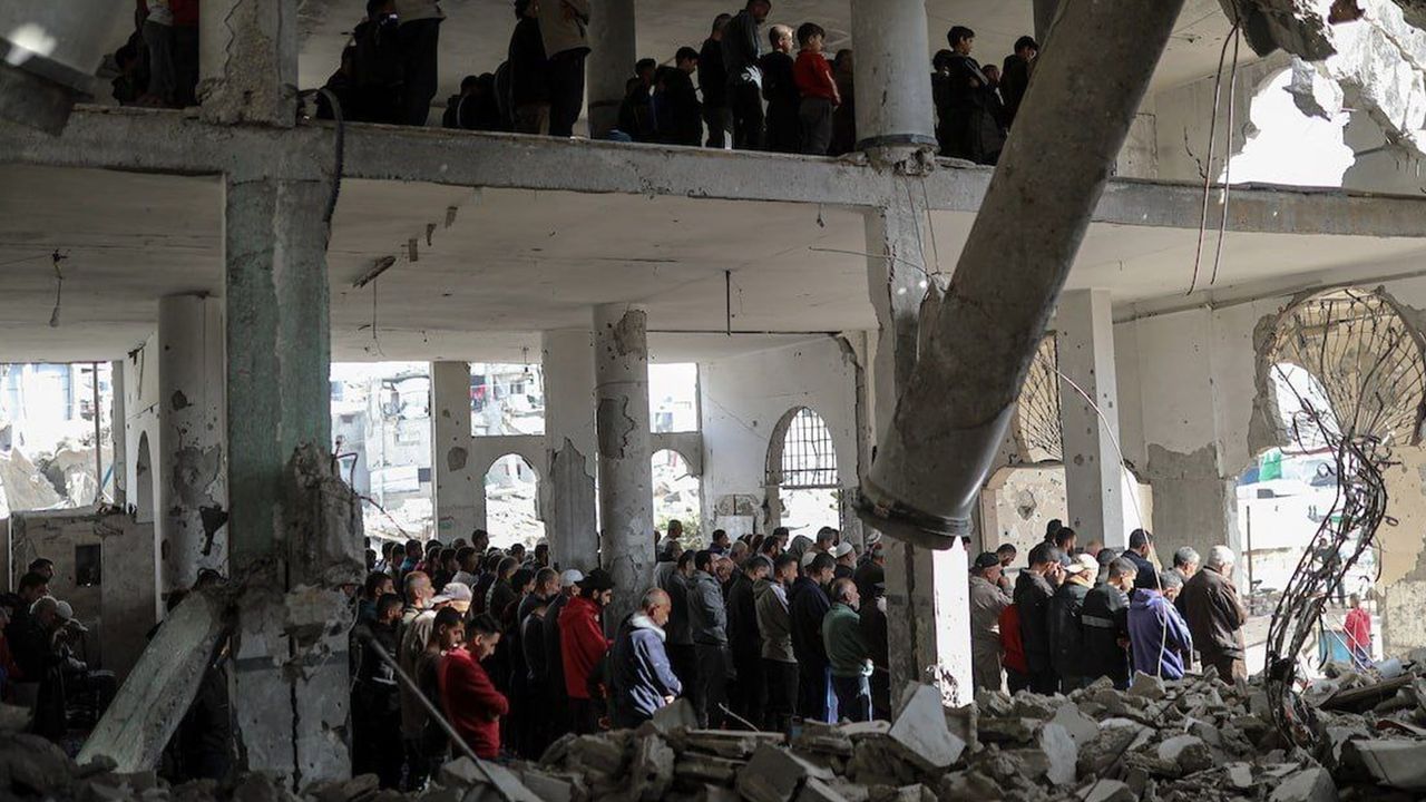 Gazze’nin güneyindeki Zeytun Semti’ndeki Selahaddin Camii, işgal rejiminin düzenlediği saldırılarda tamamen yıkılmıştı. Bölge halkı, tüm yıkıma rağmen bugün cuma namazını caminin enkazı başında kıldı.