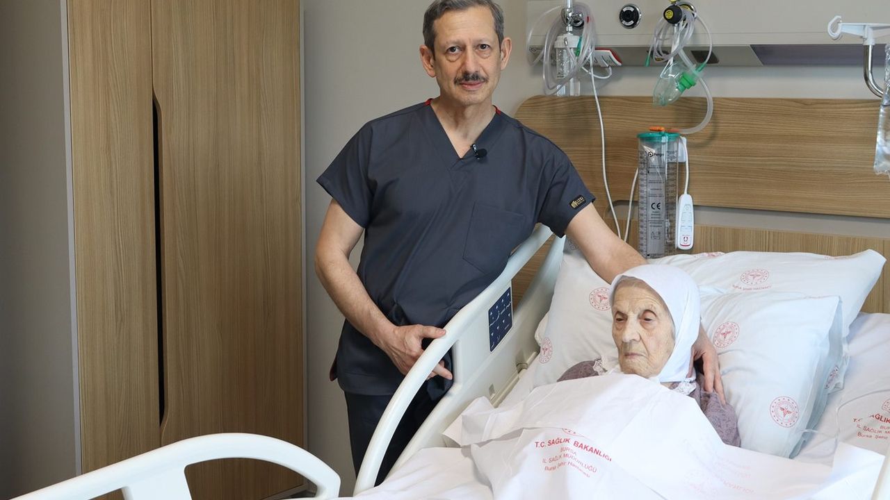 Nefes darlığı, kuru öksürük ve baş dönmesi şikâyetleri ile Bursa Şehir Hastanesi’ne başvuran 104 yaşındaki Embiye Kadıoğlu’nun kalbinde aort kapağı kalınlaşması ve darlığı tespit edildi.