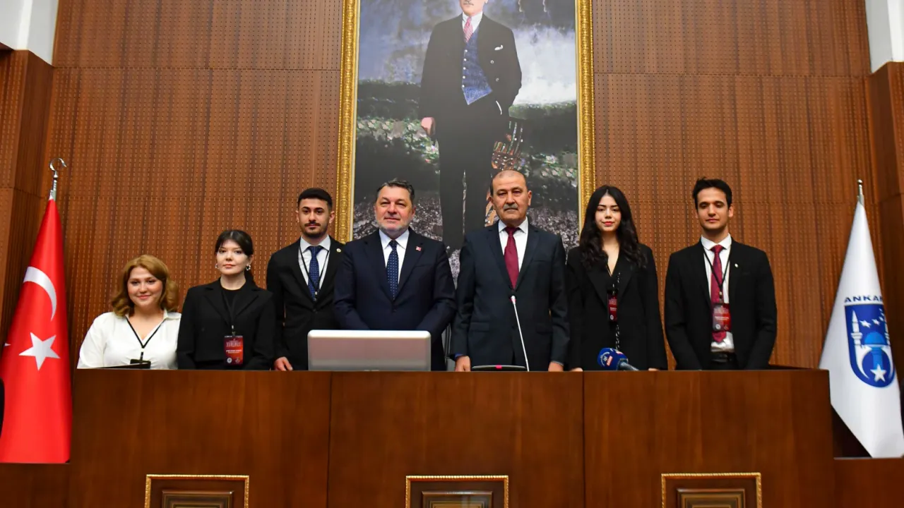 ABB Başkan Vekili Faruk Köylüoğlu, “Ulu Önder Atatürk’ün bizlere emanet ettiği gençlere Başkanımız Mansur Yavaş ve vekili Ertan Işık Meclis’i birkaç günlüğüne emanet ediyor. Ortak akıl ile Ankara’mız için neler yapılabileceğine dönük kafa yoracaksınız. Bunu bir görev bilip burada bulunmanız çok kıymetli” diye konuştu.