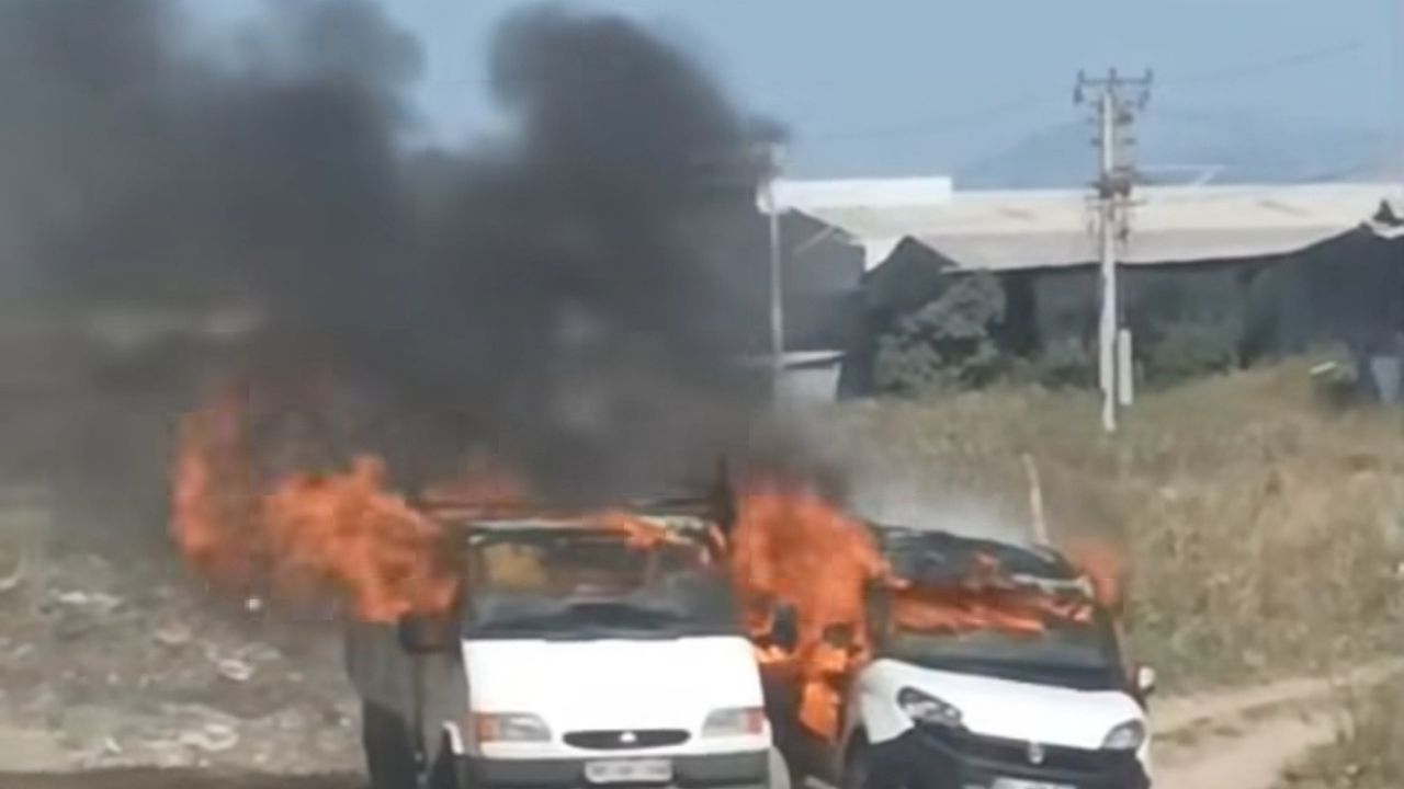 Edinilen bilgilere göre, iki araçta bilinmeyen bir sebepten yangın başladı.