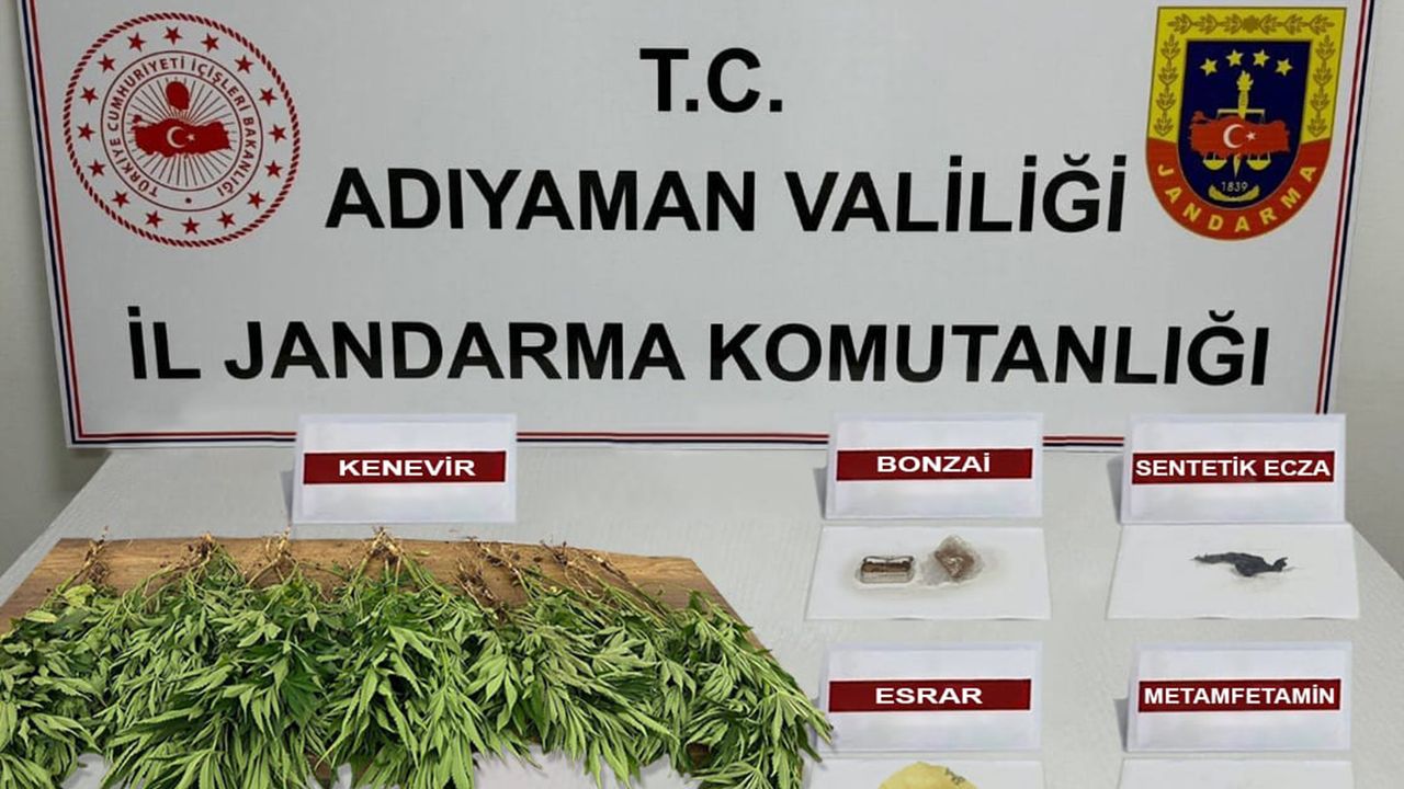 40 kök kenevir,32 gram esrar, 48 gram bonzai, 1 gram metamfetamin, 1 sentetik ecza ele geçirildi.