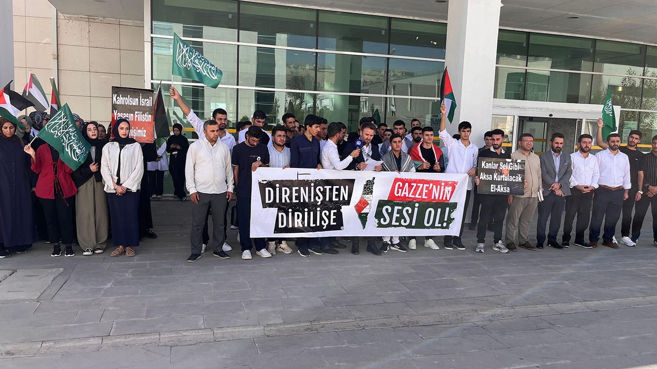 Şırnak üniversitesi öğrenci toplulukları 7 Ekim Aksa Tufanı yıl dönümünde yemekhane önünde toplanarak, 2 yıldır aralıksız süren soykırım ve katliamlara karşı basın açıklaması düzenledi.