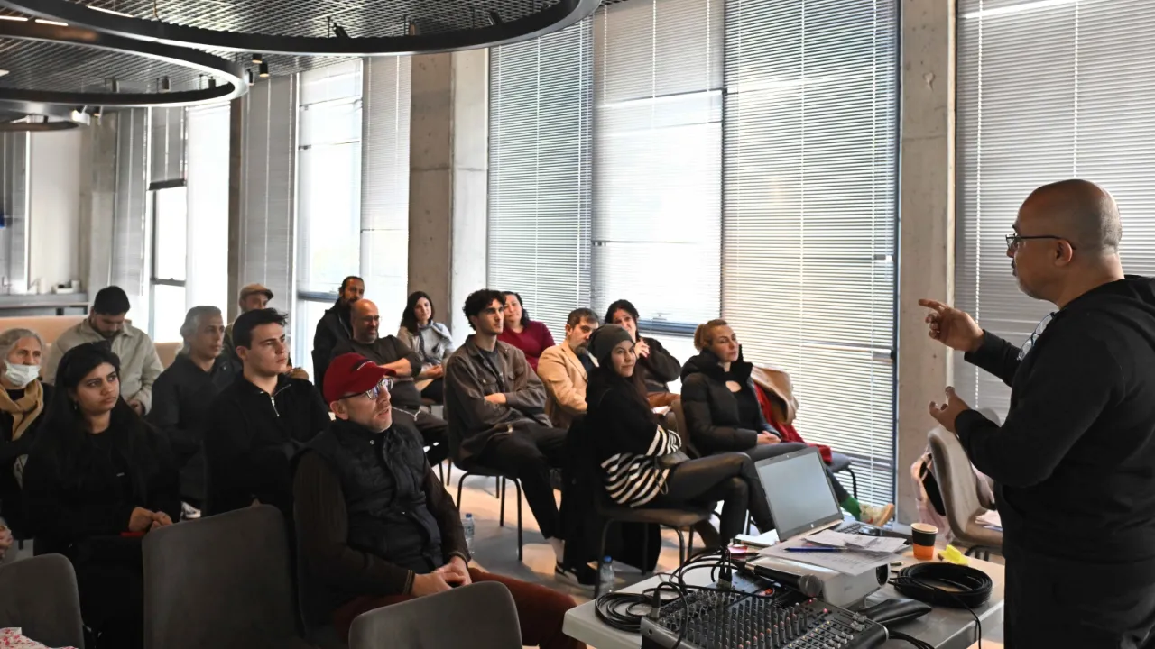 Akdeniz Üniversitesi İletişim Fakültesi Öğretim Görevlisi ve Ezber Bozan Genç Dino podcastinin yapımcısı Suat Erdöl’ün yönettiği atölyede, katılımcılara temel düzeyde teknik eğitim verildi. Podcastin hayatın içindeki yeri, nasıl üretileceği ve uygulanabilirliği üzerine bilgiler paylaşılırken, tema belirleme süreci hakkında da fikir alışverişi yapıldı.