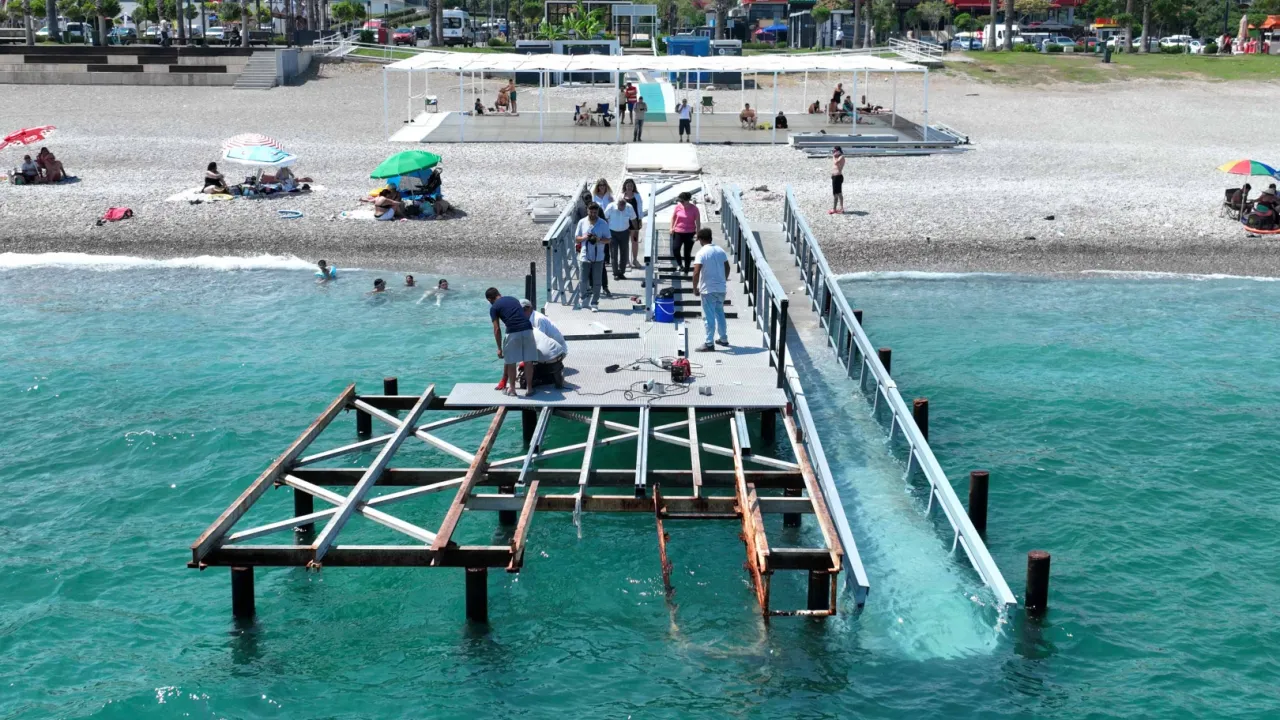 Antalya’da yaşayan ya da şehir dışından tatil için kente gelen engelli vatandaşların rahatlıkla denize girebildiği, geçtiğimiz yıl da 44 bin kişiye hizmet veren Konyaaltı Sahili’ndeki Büyükşehir Belediyesi Engelsiz Plaj yeniden düzenlenip bakım ve onarımı yapılarak engelli vatandaşların kullanabileceği hale getiriliyor. Büyükşehir Belediyesi Fen İşleri Dairesi Başkanlığı ekipleri, iskele ve donatıları yeniliyor. Plajın iskelesi dalga ve fırtınalardan etkilenmemesi için ahşap malzeme yerine daha sağlam ve kaliteli bir malzemeyle yenileniyor. Plaja ait cankurtaran kulesi de iskele üzerine monte ediliyor. Ayrıca bu yıl engelli bireylerin denize ulaşımını sağlayacak yatay asansör sistemi de yenileniyor.