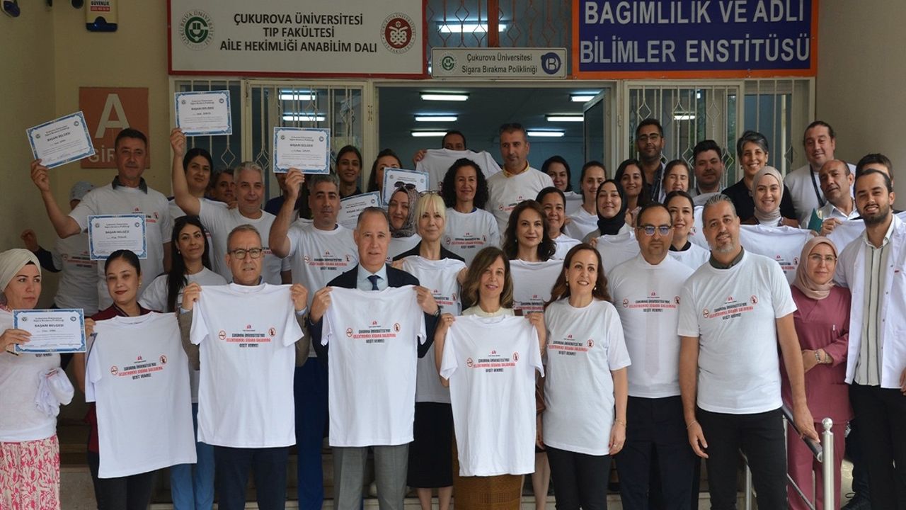 Yapılan Konuşmaların ardından Çukurova Üniversitesi Rektörü Prof. Dr. Hamit Emrah Beriş ve beraberindekiler sigarayı bırakma polikliniğinin açılışını gerçekleştirdi. Açılışın ardından poliklinikte tedavi olan ve katkı sağlayanlara sertifikaları verildi ve toplu fotoğraf çektirildi. (İLKHA)