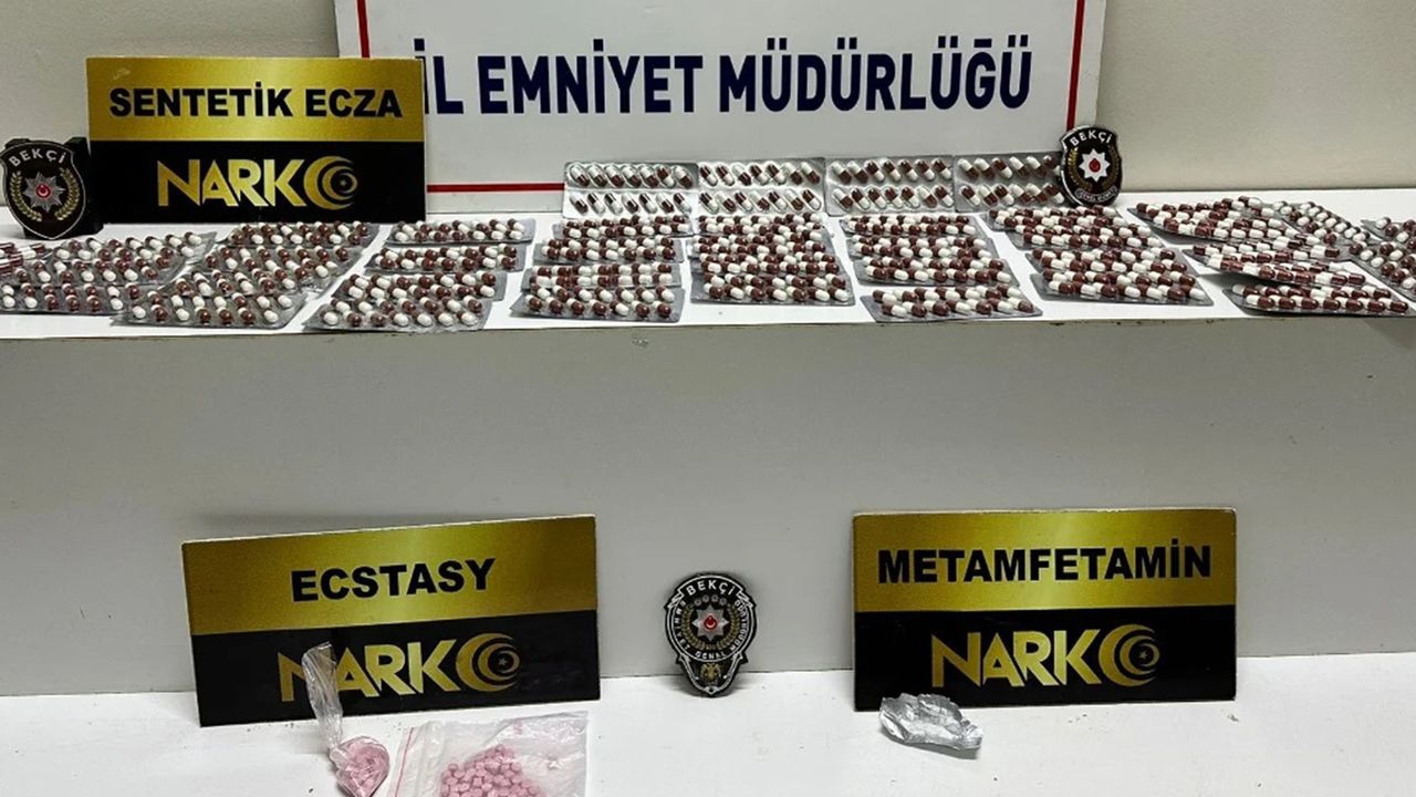 Uygulamada, 530 sentetik uyuşturucu hap ve 1,5 gram metanfetamin ele geçirildi. (İLKHA)