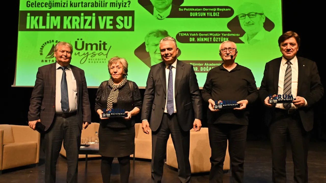 Antalya Muratpaşa Belediye Başkanı Ümit Uysal, ‘İklim Krizi ve Su’ başlığıyla gerçekleşen Forum Muratpaşa’dadünyanın ortak sorunu karşısında hayata geçirilen planlı uygulamaları işaret ederek “Bir ülkenin merkezi bir sistemi olmadan bir planlaması, bir orta vade kavramı olmadan olur mu bu işler? Yani bu ülkenin bir ortak aklı, bir ortak çıkarı, bir merkezi planlaması olmayacak mı?” diye konuştu.ANTALYA (İGFA) - Antalya Muratpaşa Belediyesi’nin demokratik ve kalkınmış bir Türkiye hedefiyle başlattığı Forum Muratpaşa’nın aralık ayı gündeminde “İklim Krizi ve Su” yer aldı. Türkan Şoray Kültür Merkezi’nde düzenlenen forumda Su Politikaları Derneği Başkanı Dursun Yıldız, TEMA Vakfı Genel Müdür Yardımcısı Dr. Hikmet Öztürk ve Türkiye Bilimler Akademisi Üyesi Prof. Dr. Doğan Yaşar konuşmacı olarak yer aldı. Forumun moderatörlüğünü ise gazeteci Meliha Okur yaptı.