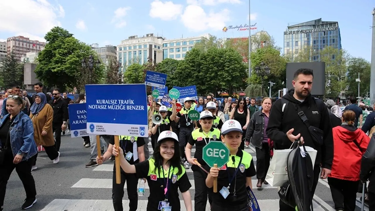 Üniforma ve şapkalarıyla Kızılay’da uygulamalı denetim yapan küçük polisler, “Trafik Kurallarına Uyun, Sevdiklerinizi Yanınızda Bulun”, “Yaşama Hakkımı Lastiklerinle Çiğneyemezsin” ve “Hız Yolu Değil, Ömrü Kısaltır” gibi sloganlarla vatandaşlara önemli mesaj verdi.