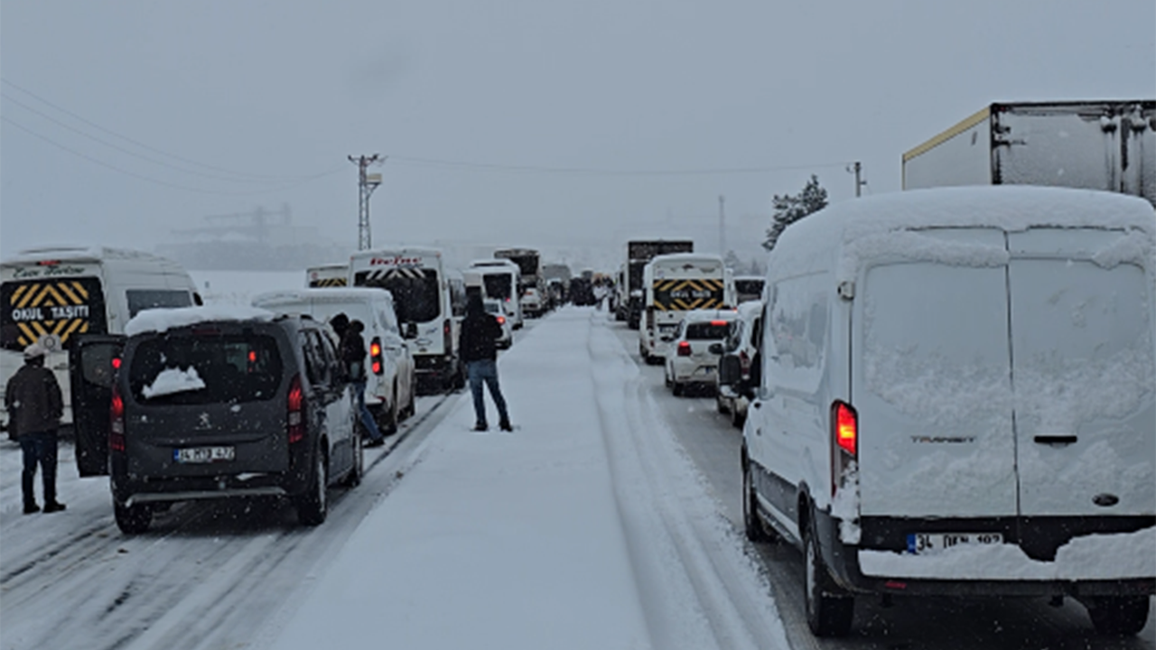 Yoğun kar ve buzlanma nedeniyle çok sayıda araç yolda mahsur kalırken, kimi araçlar ise ilerlemekte güçlük çekiyor.