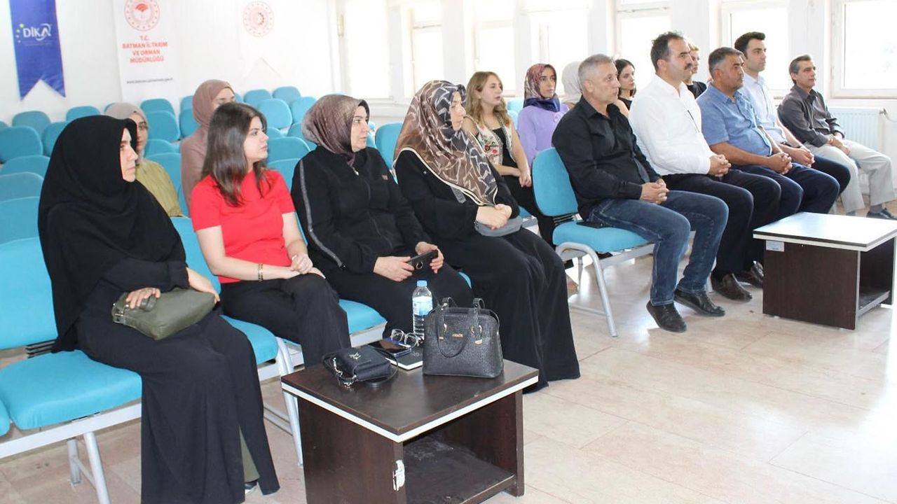 Tarım ve Orman İl Müdürlüğü Konferans Salonu’nda düzenlenen programın ilk gününe İl Tarım ve Orman Müdürü Necdet Tuncer, Batman Üniversitesi Öğretim Üyesi Doç. Dr. Kazım Kılınç, Mardin Artuklu Üniversitesi Teknoloji Transfer A.Ş. Genel Müdürü Mümtaz Korkutan, Proje Koordinatörü Barış Doyar, Ticaret İl Müdürlüğü temsilcileri ve kadın kooperatifleri üyeleri katıldı.