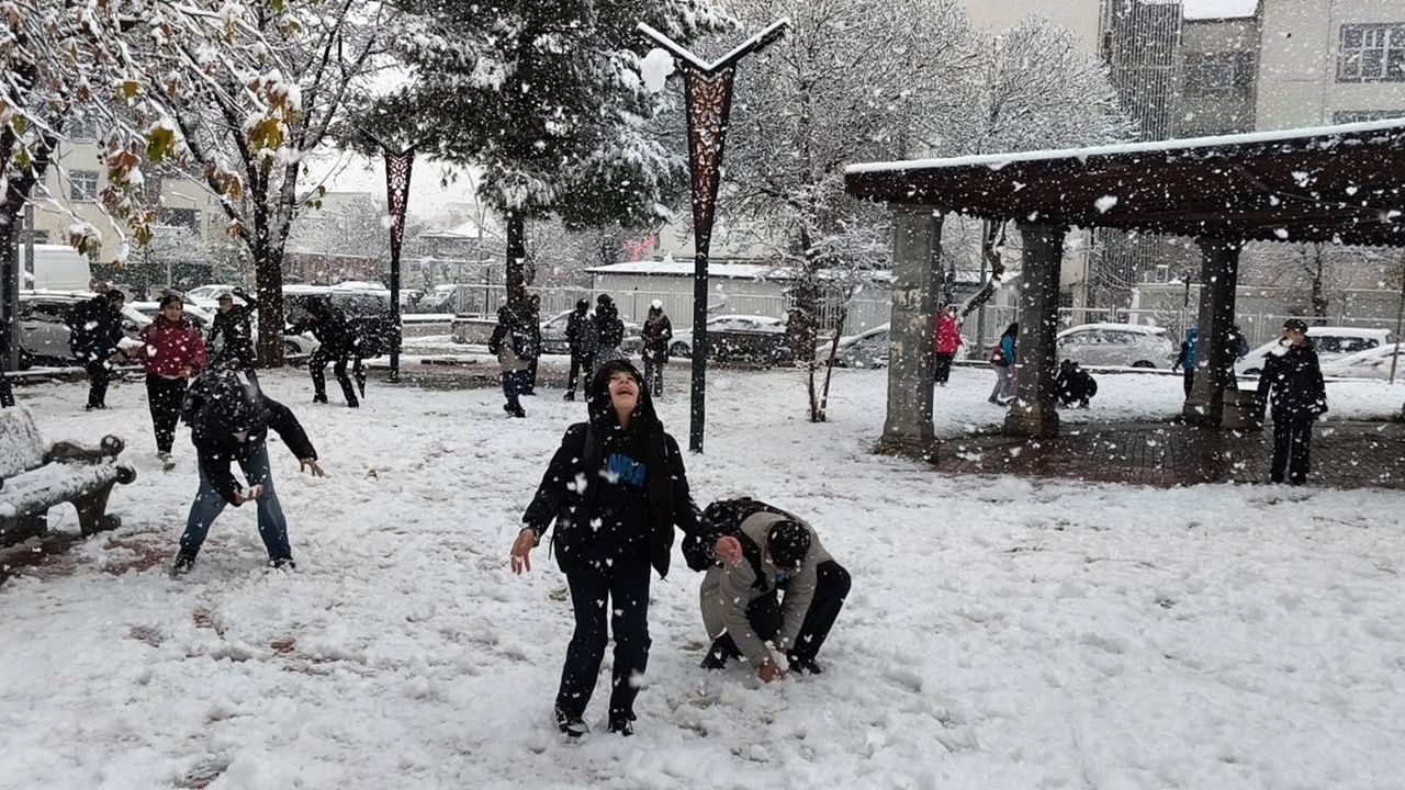 Derslerini tamamlayan öğrenciler, okul çıkışında evlerine gitmek yerine parklara yöneldi. Karla kaplanan alanlarda bir araya gelen çocuklar ve gençler, kartopu oynayarak zaman geçirdi.