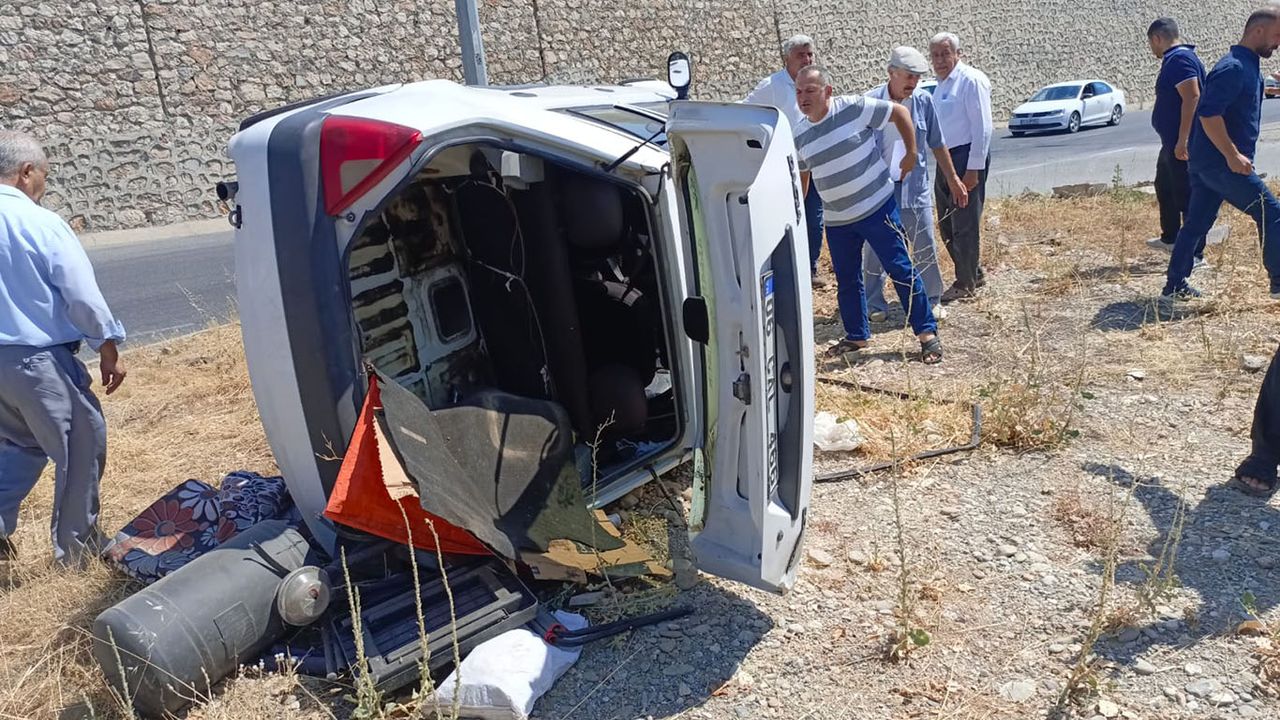 Virajı alamayan 06 CAL 466 plakalı otomobil, yol kenarına savrulup takla attı.