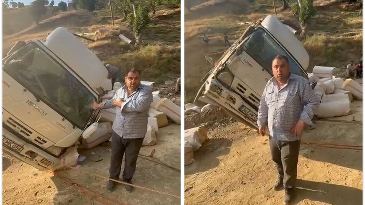 Kazanın ardından kamyon sürücüsü, olası bir facianın önüne geçmek için kamyonu halatlarla yakındaki bir ağaca bağlayarak uçuruma yuvarlanmasını engelledi.