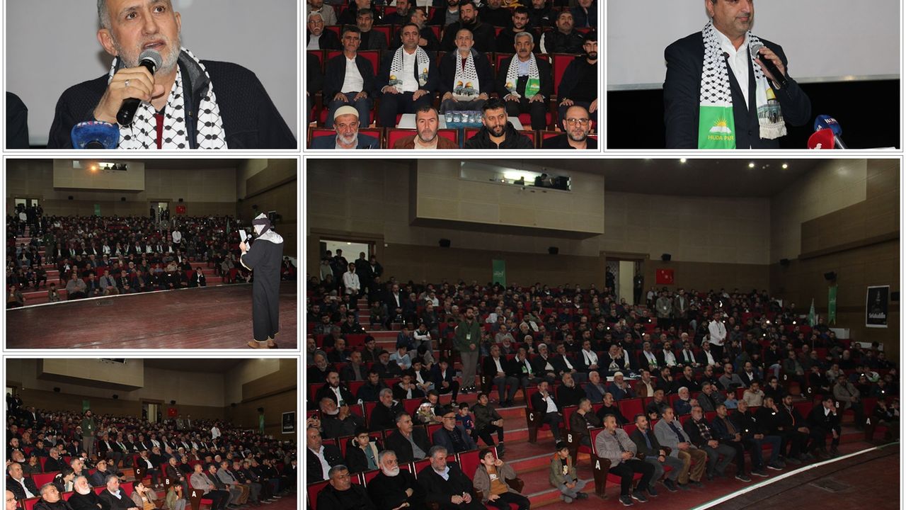 Batman İl Kültür Merkezi'nde yapılan etkinliğe; HÜDA PAR Batman Milletvekili Serkan Ramanlı, HAMAS Kudüs Yetkilisi Majed Abukutaish, HÜDA PAR İl Başkanı Davut Şahin, siyasi parti temsilcileri, alimler, kanaat önderleri, STK temsilcileri ve çok sayıda vatandaş katıldı.