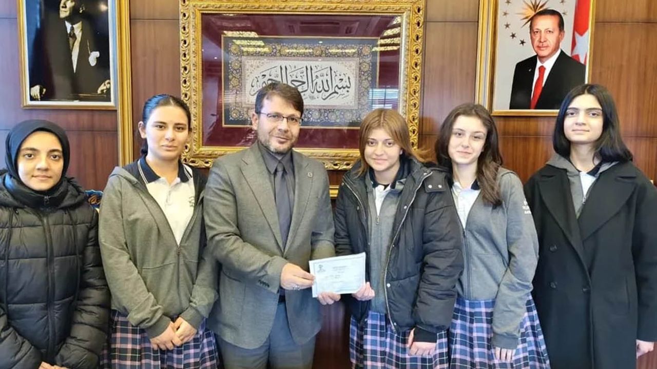 Okul Müdürü Emrah Ertaş, Din Kültürü ve Ahlak Bilgisi Öğretmeni Hüseyin Şenlik ve öğrenciler, toplanan yardım gelirini teslim etmek üzere İl Müftümüz Orhan İmamoğlu’nu makamında ziyaret etti. (İLKHA)