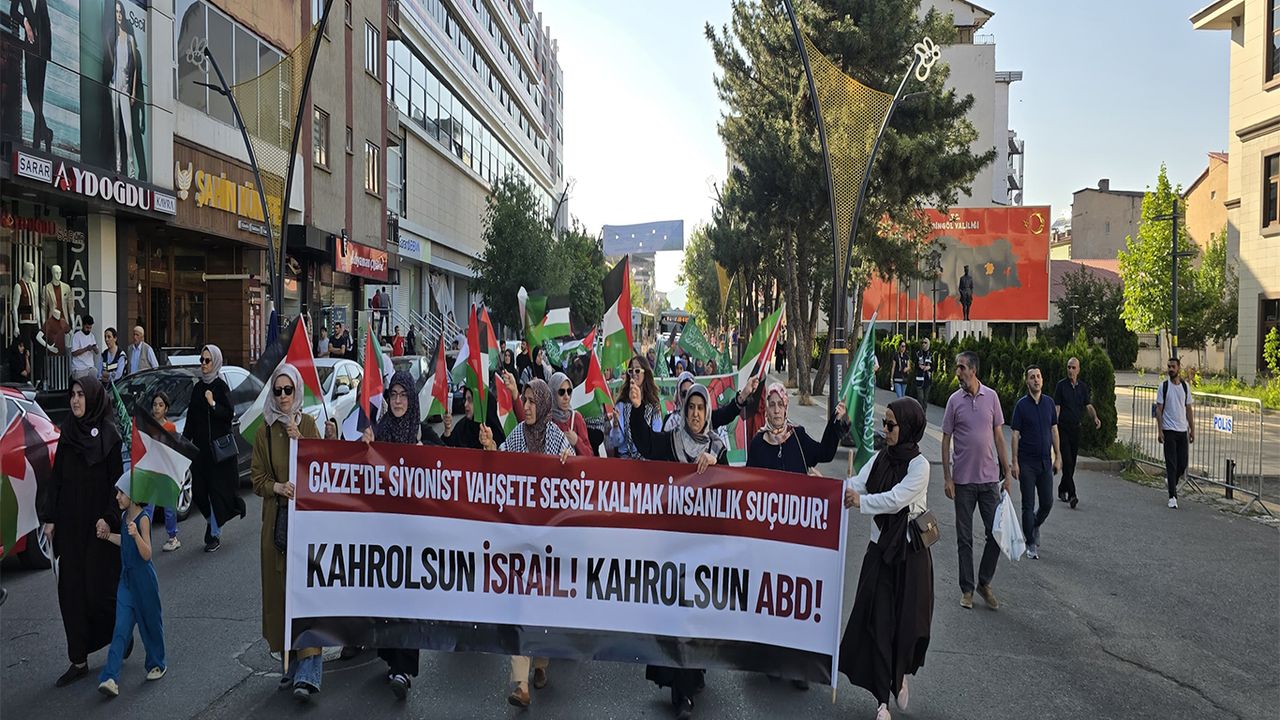İkindi namazı sonrası toplanan katılımcılar, ellerinde Filistin ve Tevhid bayraklarıyla sloganlar eşliğinde Hacı Hıdır Camii’nden Türk Telekom kavşağına doğru yürüyüş başlattılar.