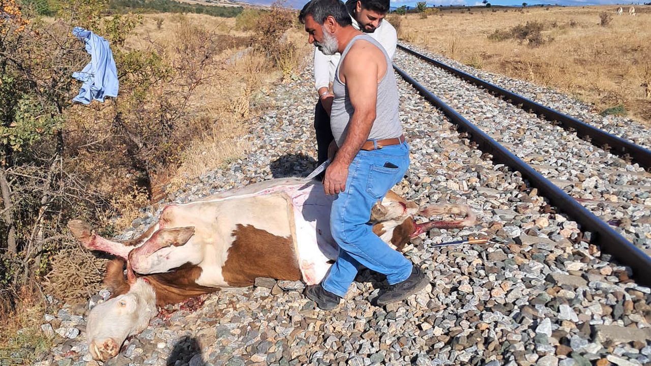 Edinilen bilgilere göre, sürüden ayrılan bir büyükbaş hayvan, köyden geçen trenin çarpması sonucu telef oldu.
