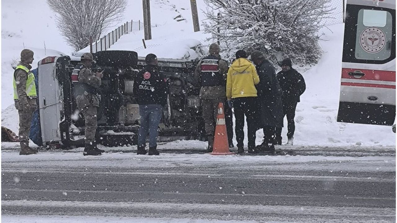 Edinilen bilgilere göre Bitlis istikametinden Van istikametine doğru seyir halinde bulunan sürücüsünün ismi ve araç plakası henüz öğrenilemeyen minibüs, kar yağışı nedeniyle kayganlaşan yolda kontrolden çıkarak takla attı.