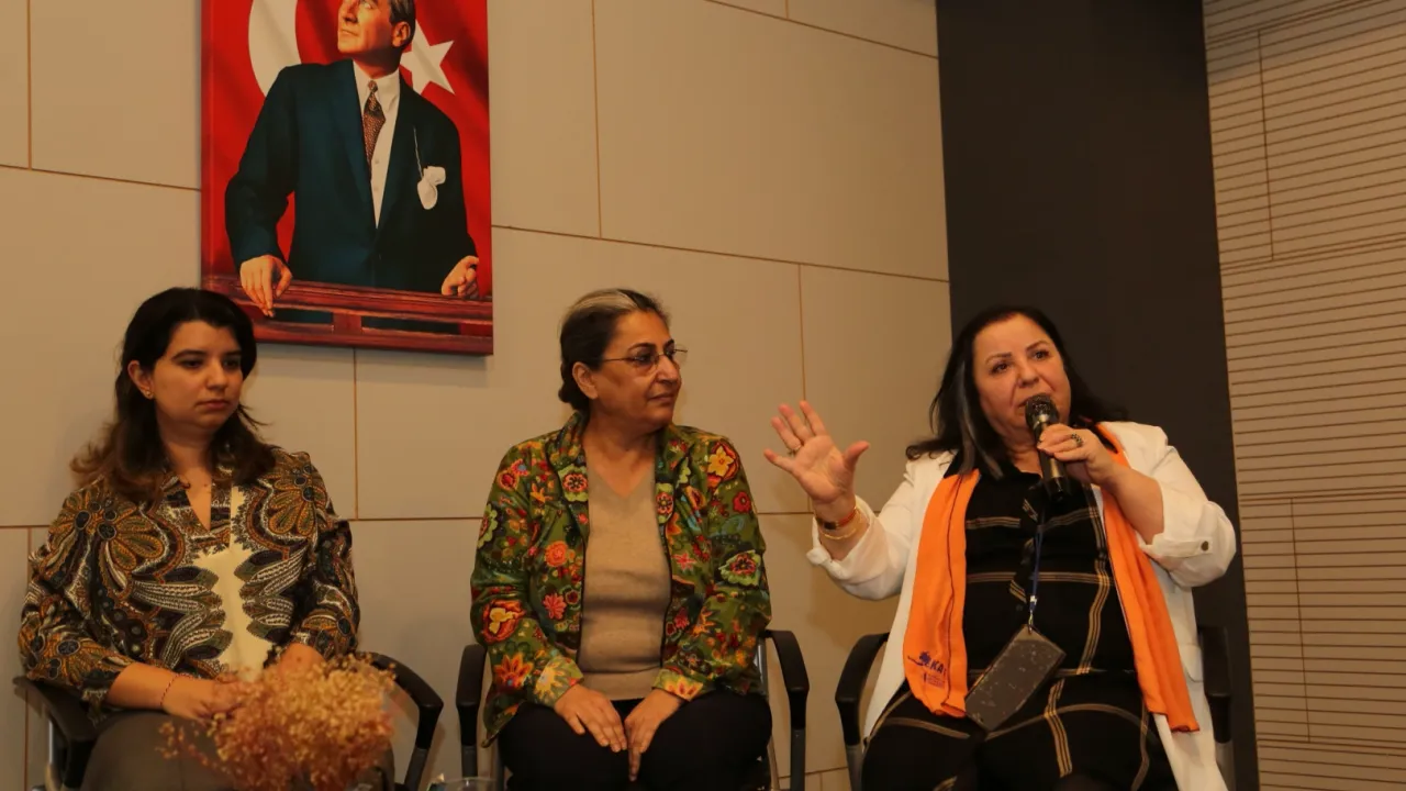 Söyleşinin ilk oturumunda, Mor Salkım Kadın Dayanışma Derneği Yönetim Kurulu Üyesi Avukat Aybüke Çakırel Şenzek, Koza Kadın Derneği Başkanı Nursel Demir, GÜÇ KAT Dezavantajlı Kadınlar Sosyal Yardımlaşma ve Dayanışma Derneği Başkanı Gülay Çelenk konuşma yaptı.