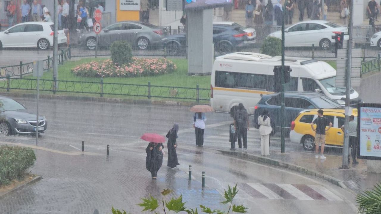 Yağış sırasında dışarıda olan Bursalılar, korunmak için çareyi dükkanların saçak altlarında ve metro istasyonlarının girişlerinde beklemekle buldu. Bazı bölgelerde yağmurla birlikte gök gürültüsü de duyulurken, özellikle kısa sürede etkili olan sağanak, yaya ve araç trafiğini olumsuz etkiledi.