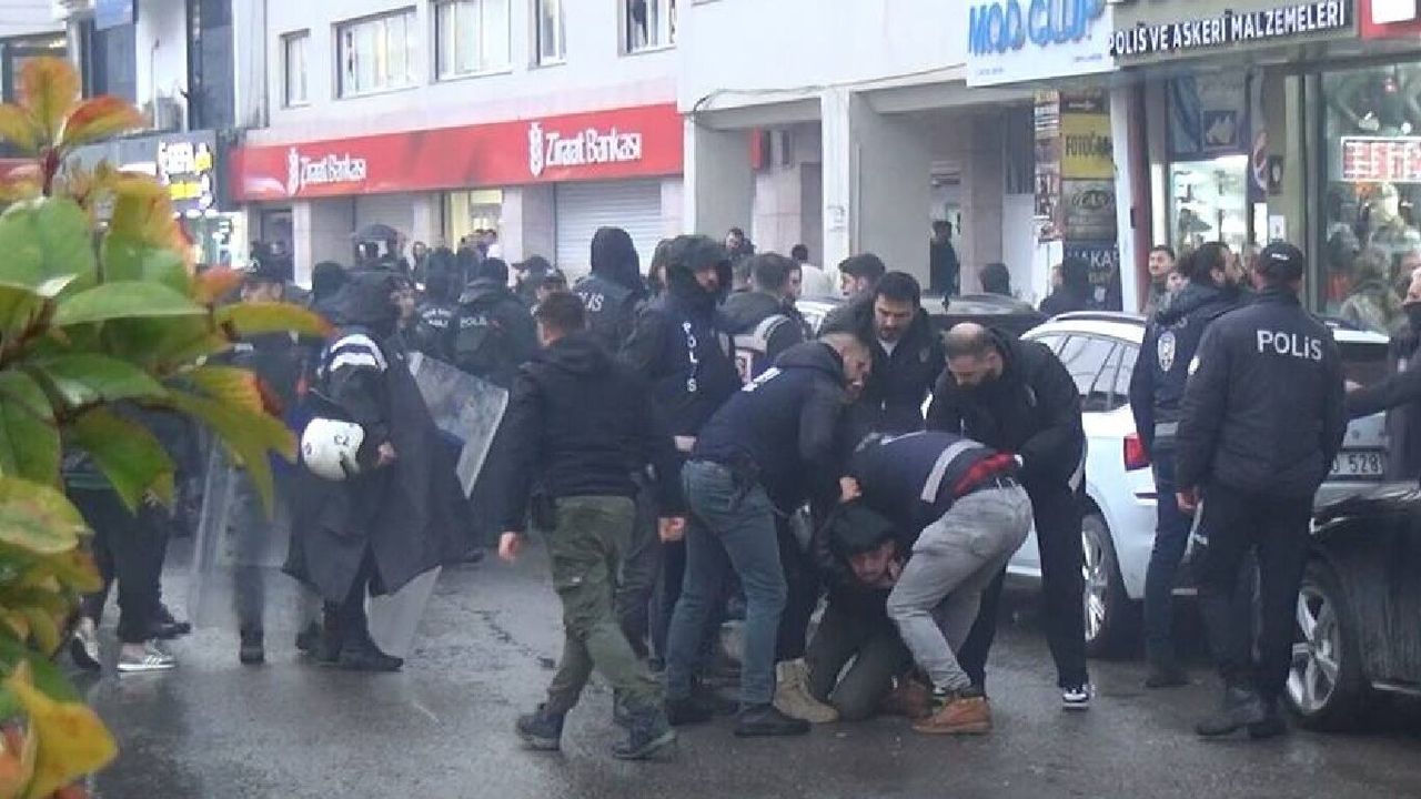 Basın açıklamasının tamamlanmasının ardından bazı kişiler, sloganlar eşliğinde izinsiz yürüyüş yapmak istedi. Polis, grubu “dağılın” uyarısıyla uyardı. Uyarılara rağmen yürüyüşe devam eden gruba müdahale edildi ve arbede yaşandı. Olaylara karıştığı belirlenen 2 kişi gözaltına alındı.
