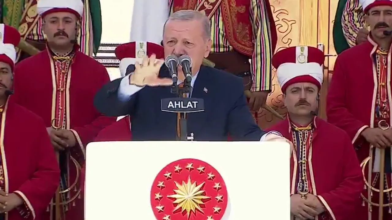 Malazgirt Zaferi'nin 954. yıldönümü kapsamındaki Bitlis Ahlat'taki törenlere katılan Cumhurbaşkanı Recep Tayyip Erdoğan, 'Terörsüz Türkiye'de son düzlükte olduklarını belirterek, önemli mesajlar verdi.BİTLİS (İGFA) - Anadolu'nun giriş kapısı Ahlat'ta düzenlenen törenlere katılan Cumhurbaşkanı Recep Tayyip Erdoğan, etkinlik alanında vatandaşlara hitap etti.
