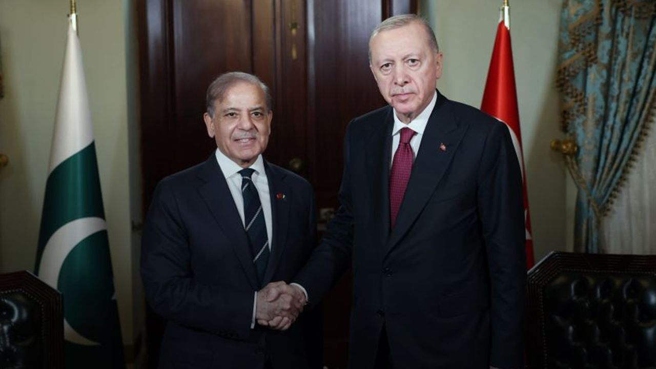 Cumhurbaşkanı Erdoğan, Pakistan Başbakanı Şahbaz Şerif'le İstanbul'daki Dolmabahçe Çalışma Ofisi'nde bir araya geldi.