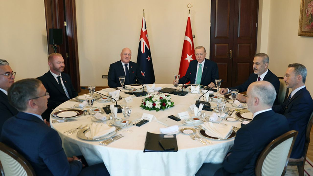 Yemekte, Dışişleri Bakanı Hakan Fidan, Cumhurbaşkanlığı İletişim Başkanı Fahrettin Altun, Cumhurbaşkanı Dış Politika ve Güvenlik Başdanışmanı Akif Çağatay Kılıç ile Yeni Zelanda heyetinden isimler de yer aldı. (İLKHA)