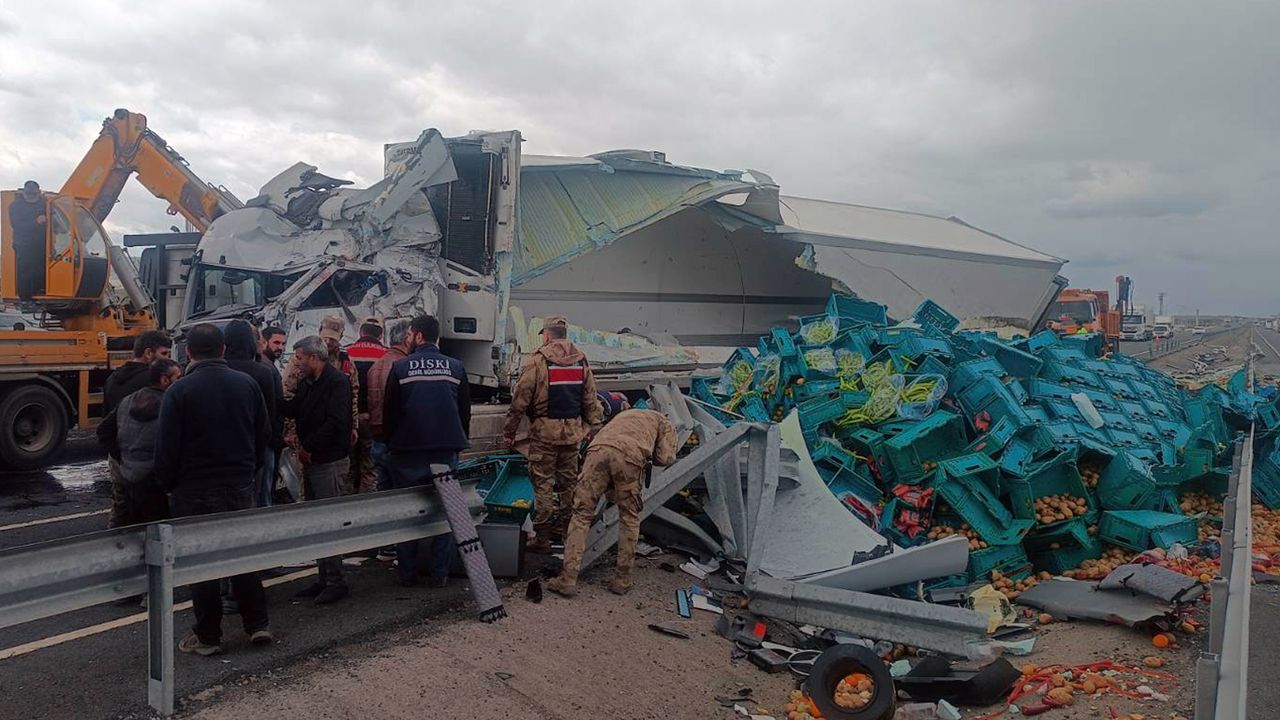 Edinilen bilgilere göre, Siverek'ten Diyarbakır istikametine doğru seyir halinde olan meyve yüklü 33 AKV 826 plakalı tır, sürücüsünün direksiyon hakimiyetini kaybetmesi sonucu bariyerlere çarparak devrildi.