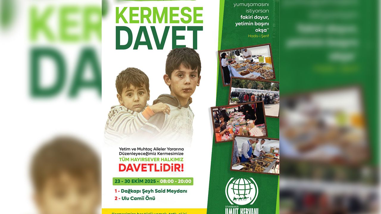 Bir hafta boyunca devam edecek kermes çalışmasına ilişkin açıklamalarda bulunan Umut Kervanı Diyarbakır Başkanı Emin Akyüz, tüm hayırseverleri kuracakları kermes alanına davet etti.