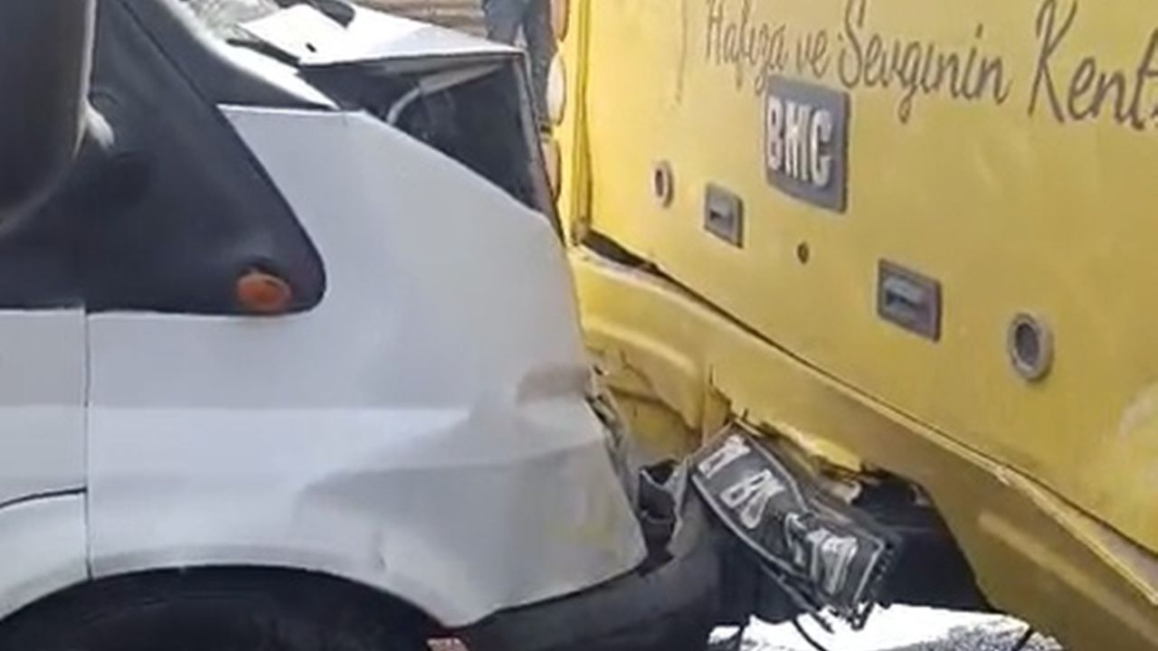 Edinilen bilgilere göre, yolcu almak için durağa yanaşan Diyarbakır Büyükşehir Belediyesine ait otobüse, arkadan gelen kamyonet çarpıştı.