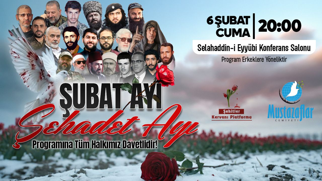 Şubat ayının şehadet ayı olması dolayısıyla Mustazaflar Cemiyeti ve Şehitler Kervanı Platformu, 6 Şubat Cuma günü saat 20.00'de Selahaddin Eyyubi Konferans Salonunda Şehitleri Anma programı düzenliyor.