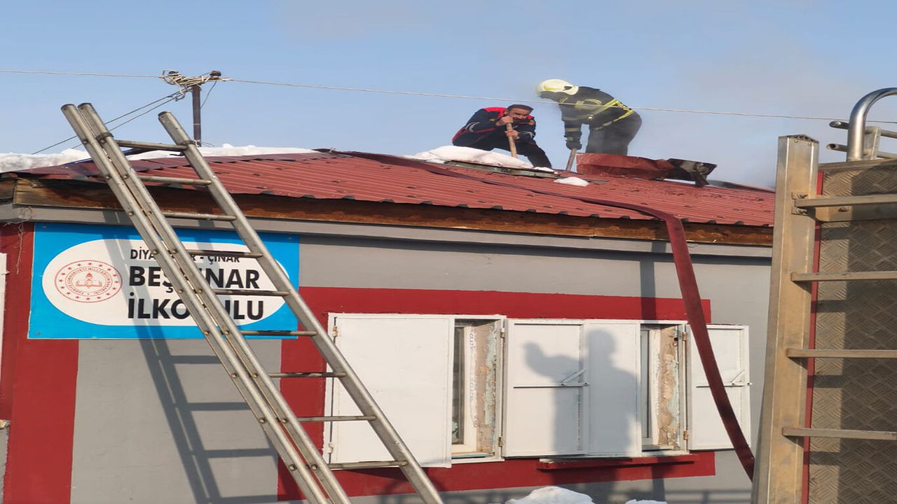 Diyarbakır’ın Çınar ilçesine bağlı Beşpınar Mahallesi’nde bulunan Beşpınar İlkokulu’nda sobadan kaynaklı olarak baca bölümünde yangın çıktı.