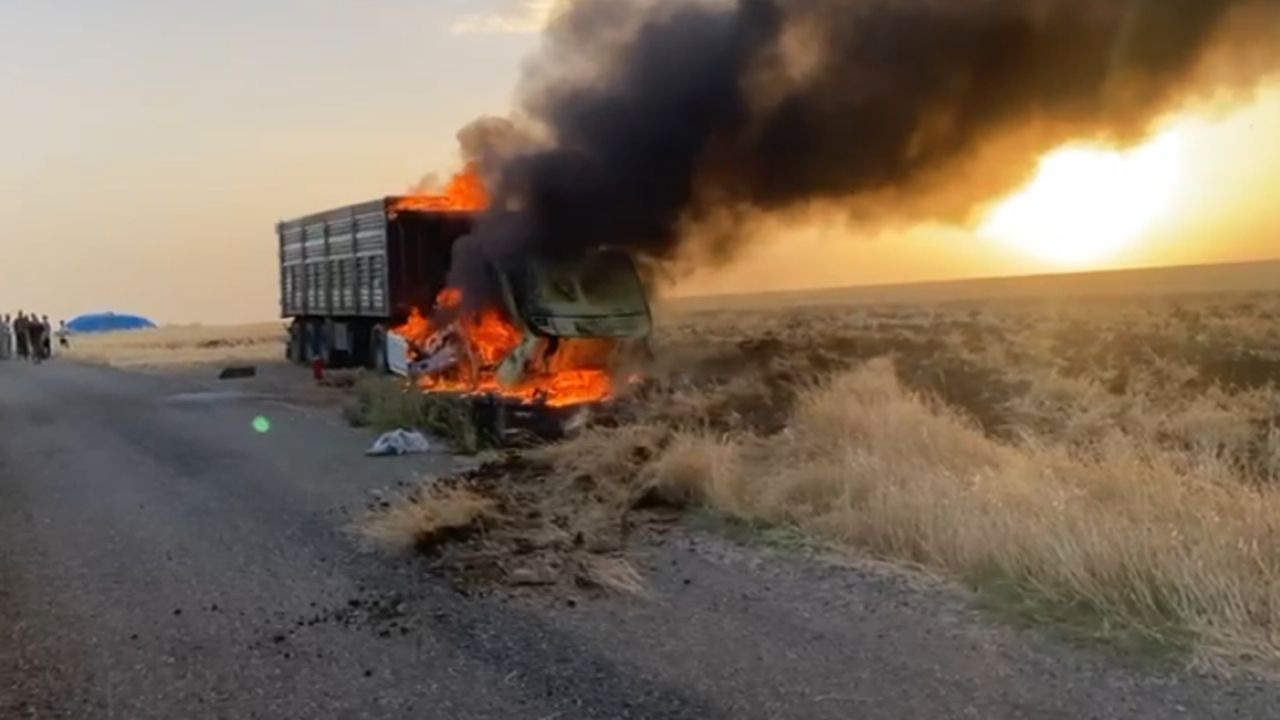 Elektrik aksamından çıktığı tahmin edilen yangında tır tamamen küle dönerken, çevre halkı yangının tarlalara sıçramaması için büyük çaba sarf ettiği görüldü.