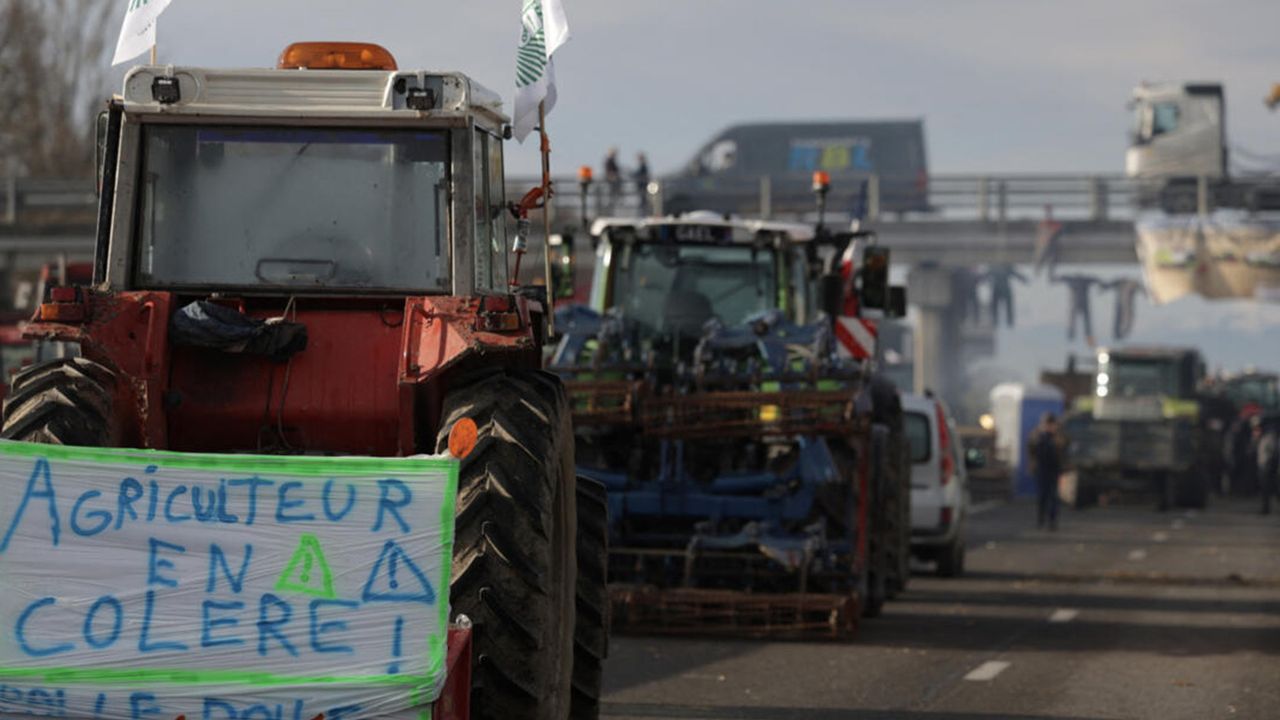 Saone-et-Loire vilayetine bağlı Macon kentinde çiftçiler, ülke genelinde süren tarım protestoları kapsamında ana ulaşım güzergâhlarında protesto gösterisi düzenledi.