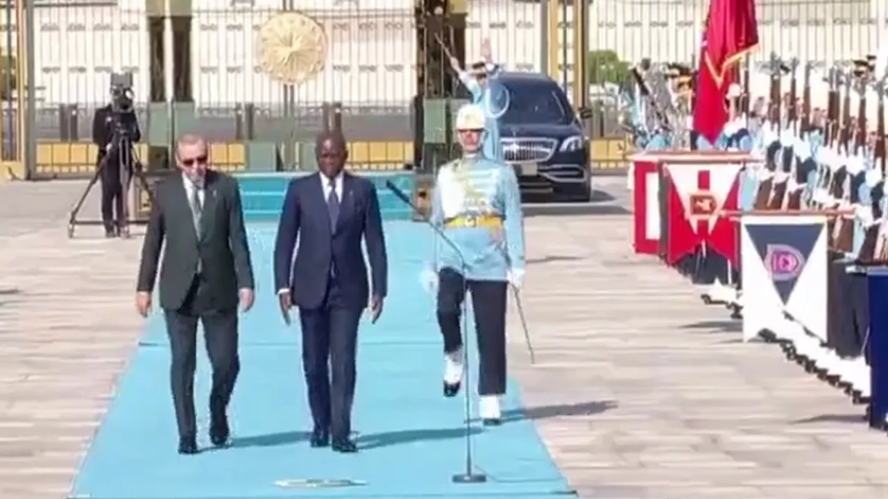 Beştepe'deki törende Nguema’yı Cumhurbaşkanı Recep Tayyip Erdoğan karşıladı.