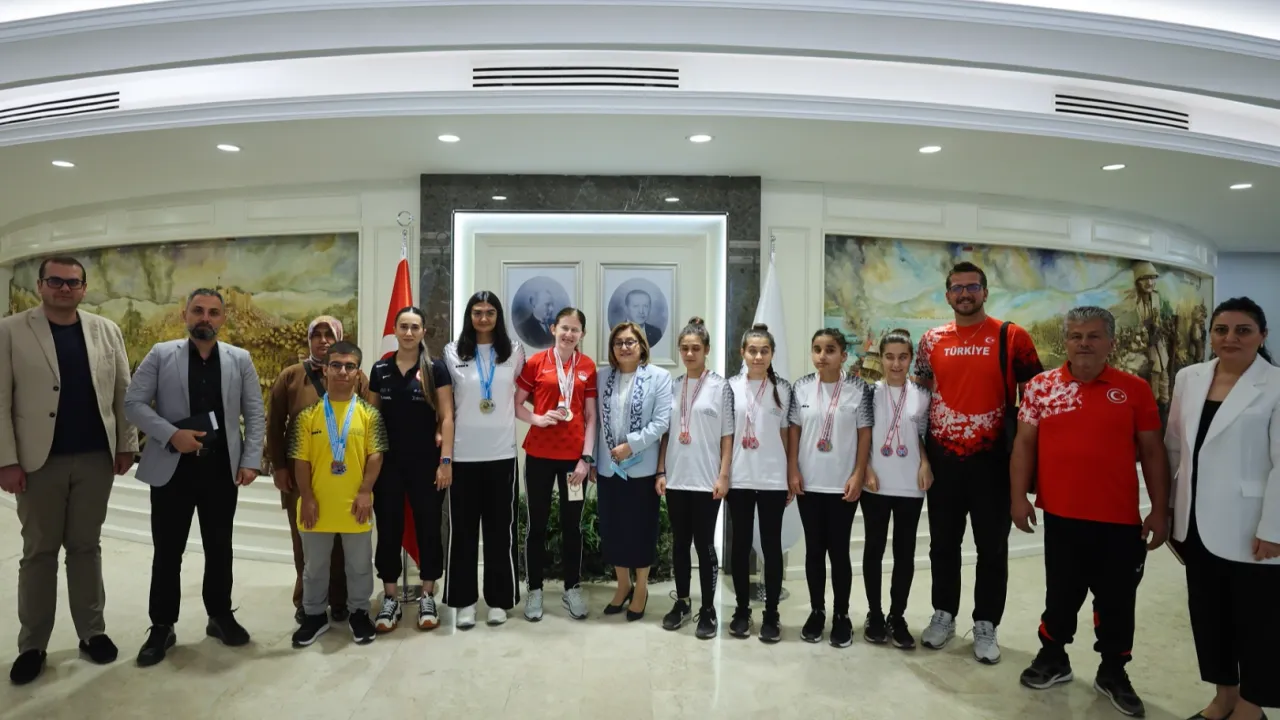 Gaziantep Büyükşehir Belediyesi (GBB) Spor Kulübü sporcuları, ulusal ve uluslararası müsabakalarda kazandıkları derecelerle Gaziantep’in gururu oldu. Başarılarının ardından sporcular, Gaziantep Büyükşehir Belediye Başkanı Fatma Şahin’i makamında ziyaret etti.