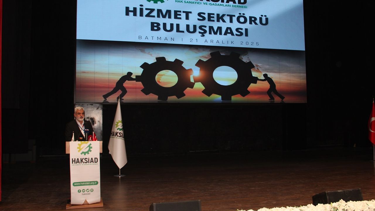 Hak Sanayici ve İş Adamları Derneği (HAKSİAD), Türkiye ekonomisinin en dinamik unsurlarından biri olan hizmet sektörünü Batman'da bir araya getirdi. Necat Nasıroğlu Külliyesi'nde gerçekleşen buluşmada kürsüye çıkan HAKSİAD Genel Başkanı Vedat Turgut, iş dünyasına birlik, ahlak ve sorumluluk vurgusu yaptı.