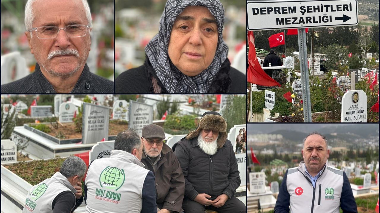 Umut Kervanı Vakfı Genel Başkan Yardımcısı Erdal Elibüyük ise depremzedelerin acılarını paylaşmak ve yaralarını sarmak amacıyla Hatay’da ziyaretler gerçekleştirdiklerini belirtti. Elibüyük “Depremin üçüncü yıl dönümü dolayısıyla iki gündür Hatay İskenderun’dayız. Dernek başkanımızla birlikte aile ziyaretleri yaptık. Bugün ise sabahın erken saatlerinde mezarlık ziyaretlerimizi gerçekleştirdik. Burası 6 Şubat depremlerinde vefat edenlerin defnedildiği mezarlıklar. Aradan üç yıl geçmesine rağmen acıların hâlâ diri olduğunu görüyoruz. Her mezar taşının ardında ayrı bir hikâye ve büyük bir dram var. Vakıf olarak depremin ilk gününden itibaren hem insani yardım hem de acıları paylaşmak adına burada olduk. Allah ülkemize bir daha böyle acılar yaşatmasın.” dedi. (İLKHA)