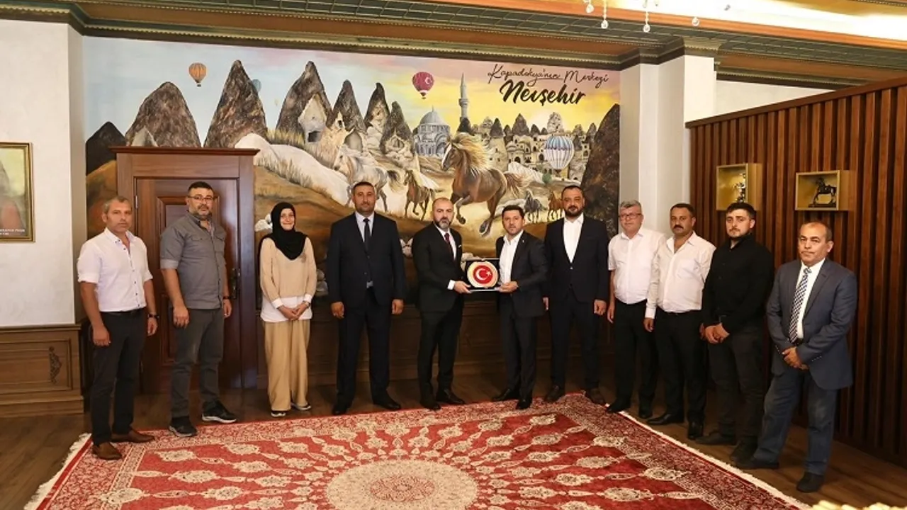 Hizmet-İş Nevşehir Şube Başkanı Faruk Fazlıoğlu, Yönetim Kurulu üyeleri ve sendika temsilcileri Nevşehir Belediye Başkanı Rasim Arı’ya nezaket ziyaretinde bulundu.NEVŞEHİR (İGFA) - Nevşehir Belediyesi işçilerinin sendikası olan Hizmet - İş Sendikası Nevşehir Şube Başkanı Fazlıoğlu, Nevşehir Belediye Başkanı Rasim Arı'yı makamında ziyaret ederek yürütülen çalışmalar hakkında bilgiler verdi.