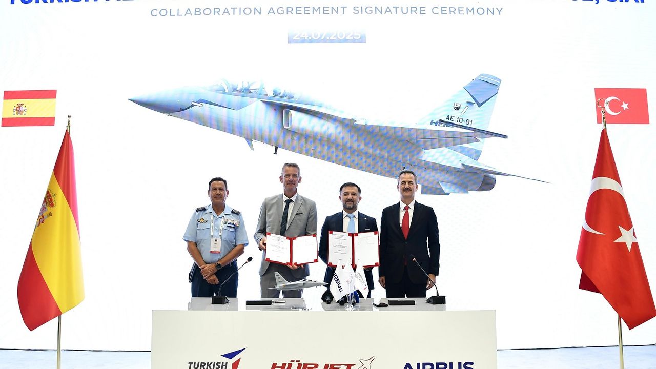 Savunma Sanayii Başkanlığı’nın sosyal medya hesabından yapılan açıklamada, "IDEF 2025 kapsamında, TUSAŞ standında Savunma Sanayii Başkanımız Prof. Dr. Haluk Görgün'ün katılımıyla, TUSAŞ ile AIRBUS İspanya arasında HÜRJET Projesi'ne dair iş birliği sözleşmesi imzalandı.