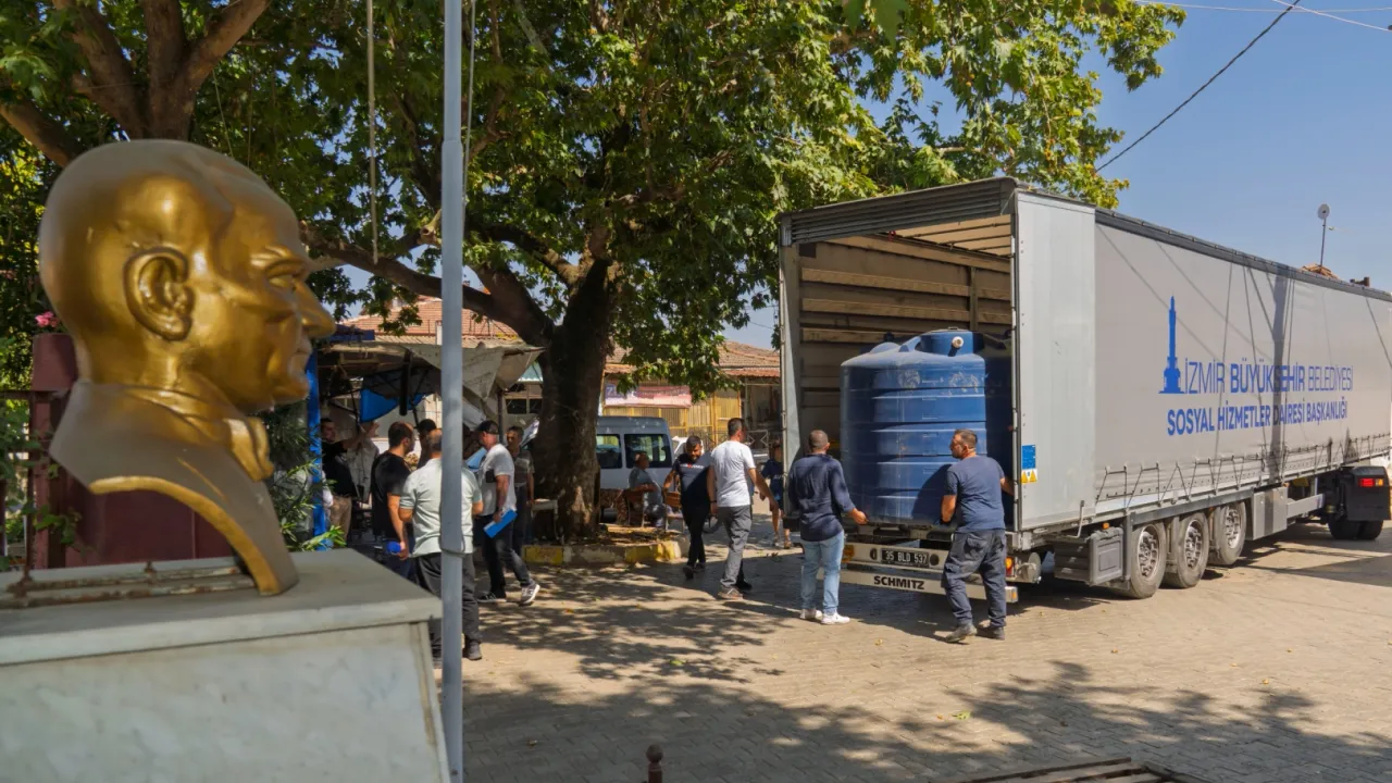 İzmir Büyükşehir Belediyesi, orman yangınlarında en çok yara alan Ödemiş’in köylerinde su deposu dağıtımına başladı. Tarımsal ve hayvansal üretimin devamlılığını sağlamak için büyük öneme sahip su depoları yangından zarar gören tüm üreticilere ulaştırılmaya devam edecek.İZMİR (İGFA) - İzmir Büyükşehir Belediyesi, orman yangınlarının açtığı yaraları sarmak için çalışmalarını sürdürüyor.