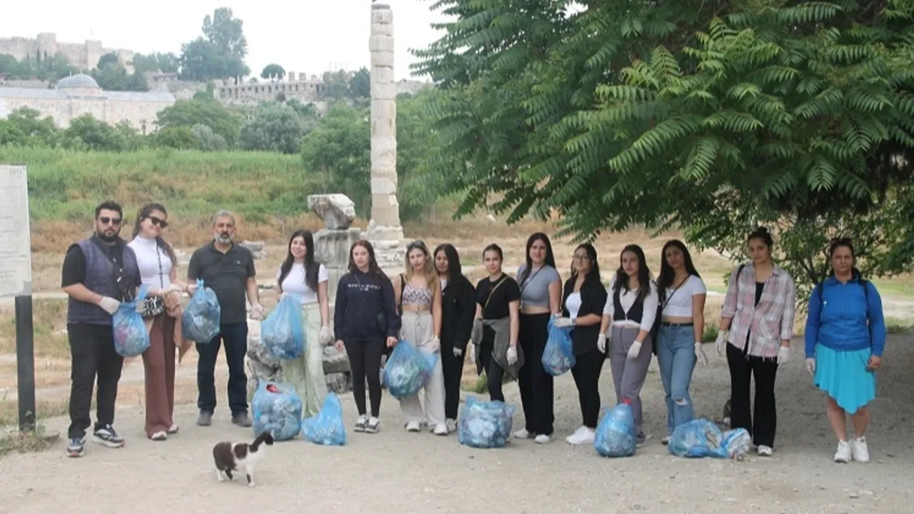 Dokuz Eylül Üniversitesi Efes Meslek Yüksekokulu öğrencileri gönüllülük çalışmaları kapsamında Öğretim Görevlisi Murat Ekici önderliğinde Efes Selçuk Belediyesi Selçuk Efes Kent Belleği iş birliğiyle Kültürel Miras alanlarında farkındalık yaratmak için temizlik çalışmaları gerçekleştirdiler.İZMİR (İGFA) - İzmir Efes Selçuk'ta su kemerlerinden, Artemis Tapınağı'na, Ayasuluk Kalesi çevresinden 14. yüzyıl Aydınoğlu Beyliği Dönemi yapılarının çevresine kadar kentin dört bir yanında gönüllülük esasıyla temizlik yapan öğrenciler, kültürel miras alanlarının ziyaretçiler tarafından sağlıklı bir şekilde ziyaret edilmesi açısından çevre temizliğinin önemine de dikkat çektiler.