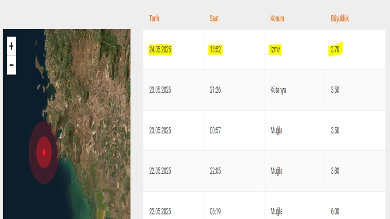 Afet ve Acil Durum Yönetimi Başkanlığı'nın (AFAD) internet sitesinde yer alan bilgiye göre, İzmir'in Foça ilçesi açıklarında saat 13.52'de 3,7 büyüklüğünde deprem meydana geldi.
