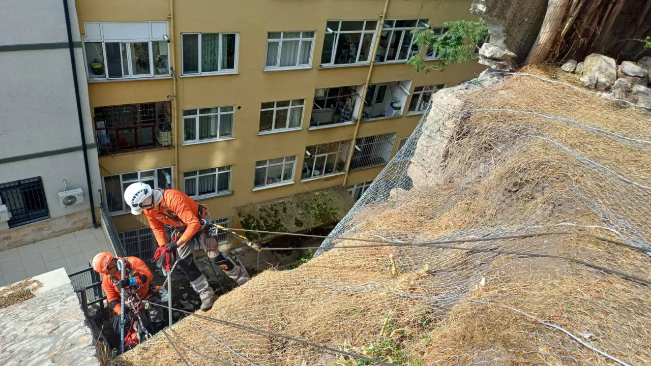 Yüksekten kayabilecek kaya parçalarının çevreye zarar vermesi önlenirken, eğimli arazinin üst kısmına güvenlik amacıyla korkuluk yerleştirildi. Kocaeli Büyükşehir Belediyesi’nin bu müdahalesi, bölgedeki yapıların güvenliğini sağlamakla kalmayıp, olası afet risklerini de en aza indirdi.
