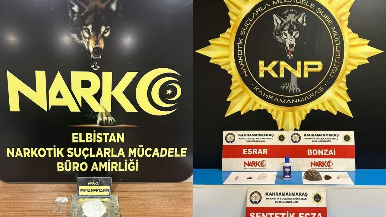 Kahramanmaraş İl Emniyet Müdürlüğü Narkotik Suçlarla Mücadele Şube Müdürlüğü görevlileri, suçüstü yakaladıkları bir şahsın üzerinde, ikametinde ve aracında yaptıkları aramalarda; 27,42 gram sentetik kannabinoid (bonzai), 1,50 gram esrar, 1 adet satışı izne tabi sentetik hap ve 1 adet aseton ele geçirdi.