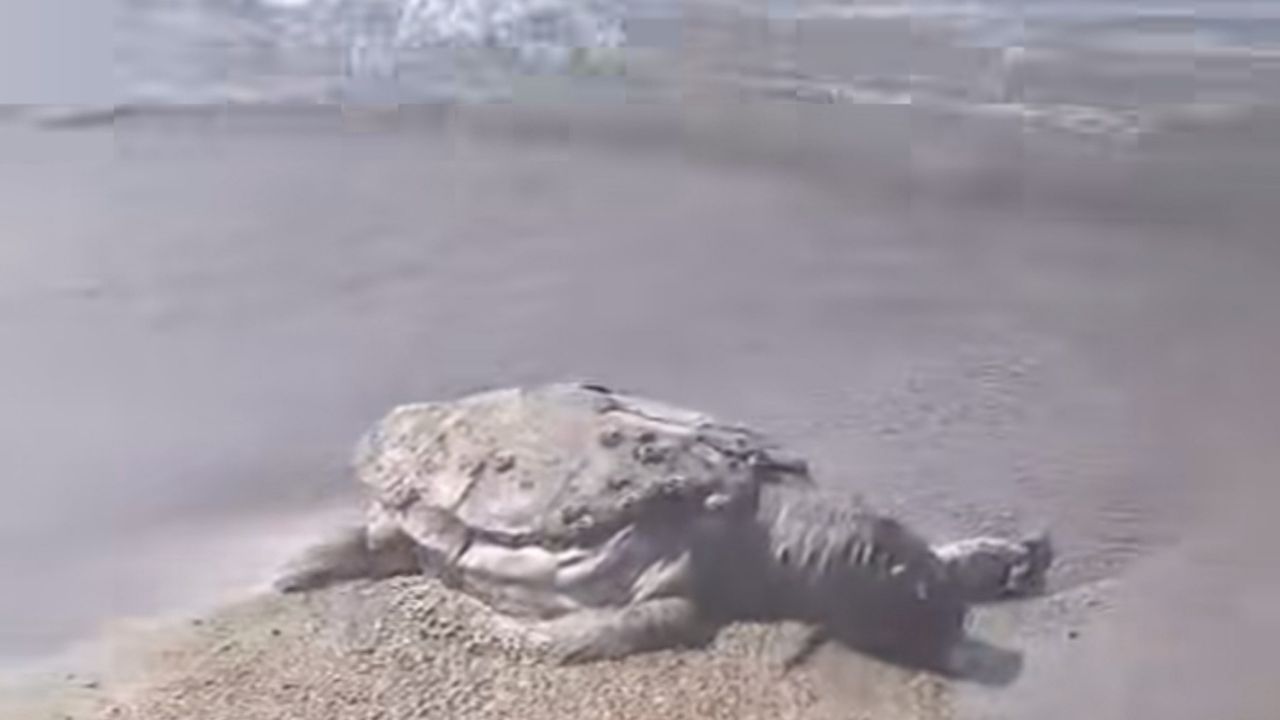 Edinilen bilgilere göre, sabah saatlerinde sahilde yürüyüş yapan vatandaşlar, kumsalda hareketsiz halde yatan kaplumbağayı fark ederek durumu yetkililere bildirdi.