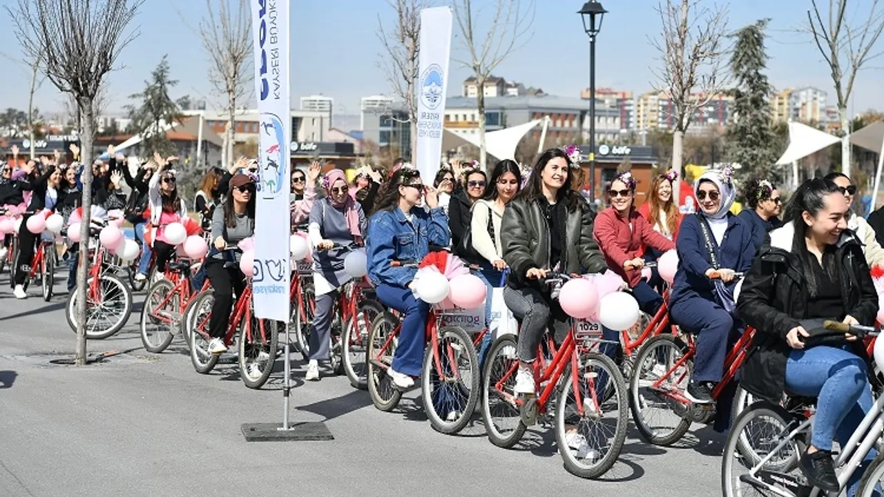 Kayseri Büyükşehir Belediyesi Spor A.Ş. 8 Mart Dünya Kadınlar Günü dolayısıyla Çiçek Kadınlar Bisiklet Turu etkinliği düzenledi. Dünya Kadınlar Günü’ne özel olarak Recep Tayyip Erdoğan Millet Bahçesi’nde gerçekleştirilen etkinlikte kadınlar özel günleri için pedal çevirdi.KAYSERİ (İGFA) - Kentte spor faaliyetleri ve spor hizmetleri ile on binlerce vatandaşa dokunan Büyükşehir Belediyesi’nin spor kuruluşu Spor A.Ş. özel gün ve haftalara özel etkinlikleri ile de spor ve eğlenceyi Kayserililerle buluşturuyor.