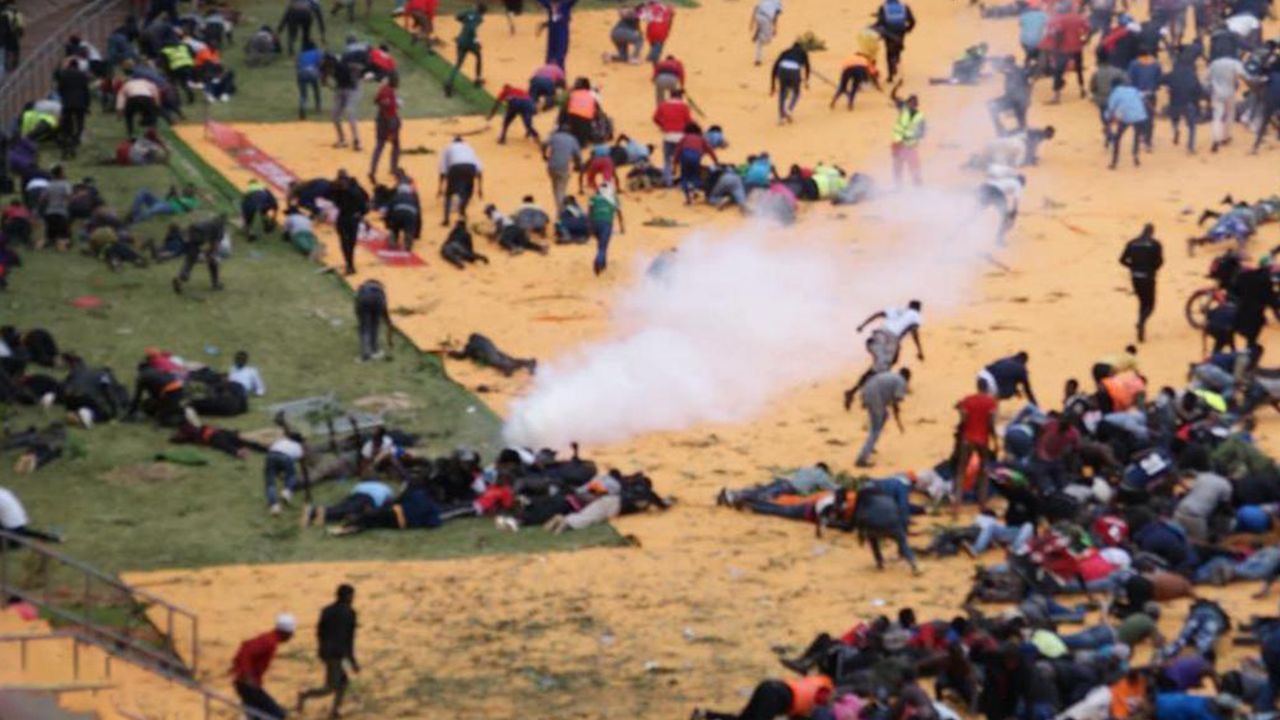 Kalabalığın stadyum kapılarından birini aşmasının ardından ise polis protestoculara karşı göz yaşartıcı gaz kullandı.