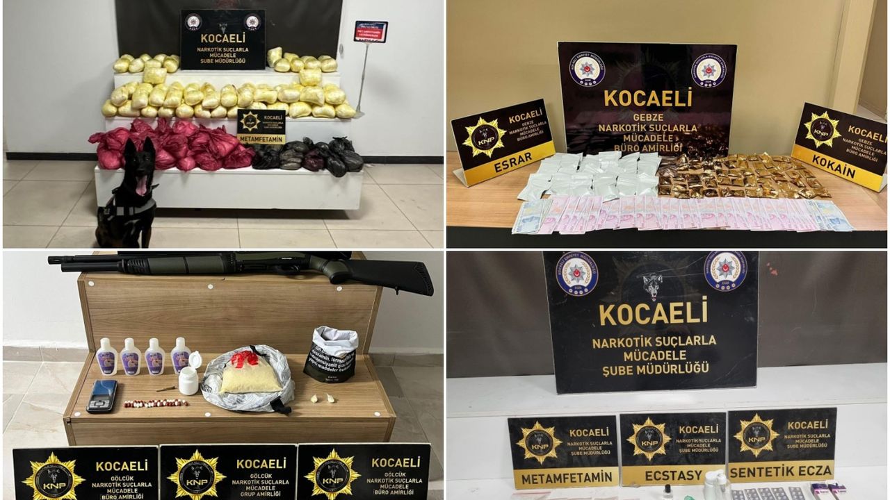 Operasyonlarda 102 kilogram 61 gram metamfetamin, 2 kilogram 978 gram sentetik kannabinoid, 543 gram sentetik kannabinoid hammaddesi, 241 gram esrar, 217 gram GHB, 90 gram kokain, 223 adet sentetik ecza, 2 hassas terazi, 1 tüfek, 1 tabanca, 5 fişek ve 20 bin 530 TL nakit ele geçirildi. (İLKHA)